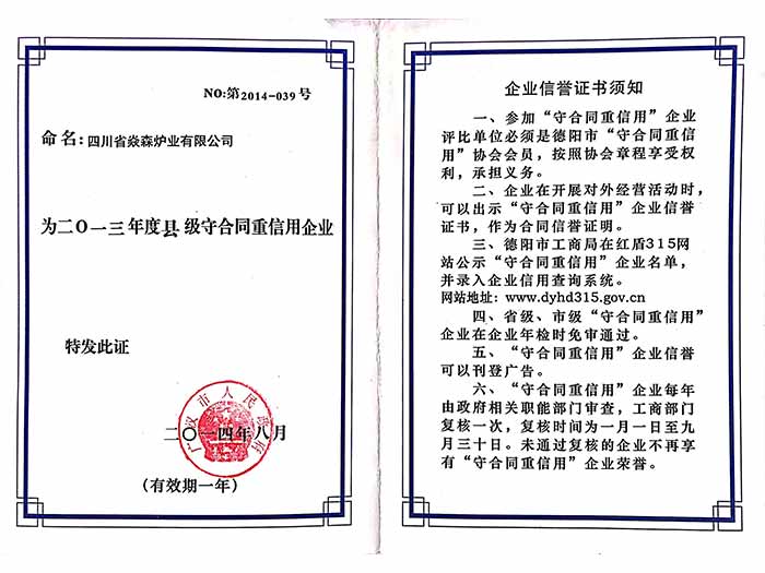四川省焱森爐業(yè)有限公司注冊資金1200萬元,生產(chǎn)車間近1萬平方米,是一家集生物質(zhì)爐研發(fā)、設(shè)計、生產(chǎn)、銷售、服務(wù)、技術(shù)咨詢于一體的國家高新技術(shù)企業(yè)。公司技術(shù)力量雄厚,生產(chǎn)設(shè)備齊全,工人技術(shù)熟練,所有產(chǎn)品嚴格按照國家相關(guān)標準及ISO9001:2008質(zhì)量管理體系實行模具化、規(guī)范化生產(chǎn),年產(chǎn)能力達15萬臺以上。公司擁有建全的14001環(huán)境體系認證及18001職業(yè)健康安全體系認證。我公司擁有自己的知識產(chǎn)權(quán)及自主品牌“焱森”,是國家高新技術(shù)企業(yè),擁有54項專利。